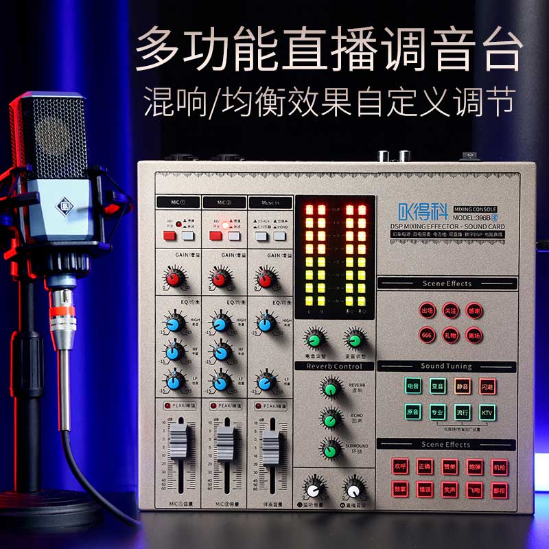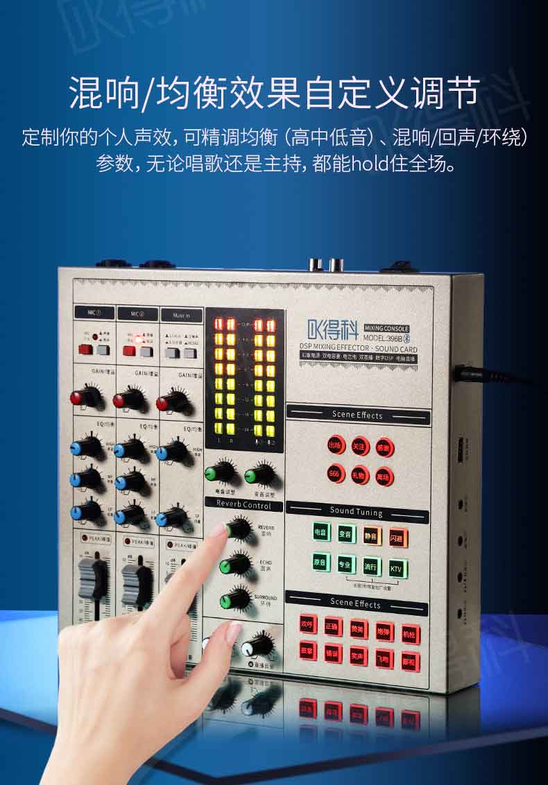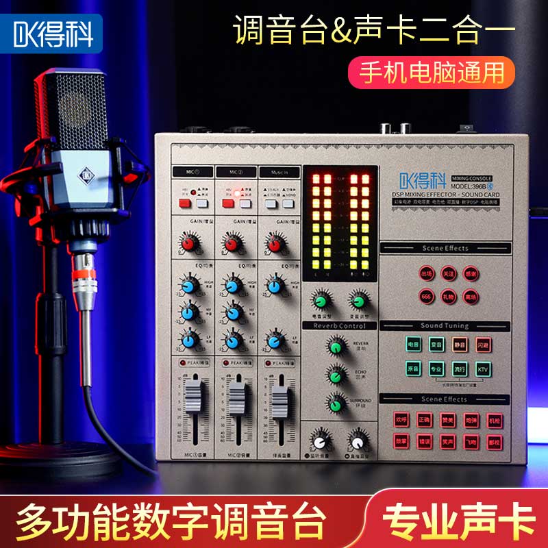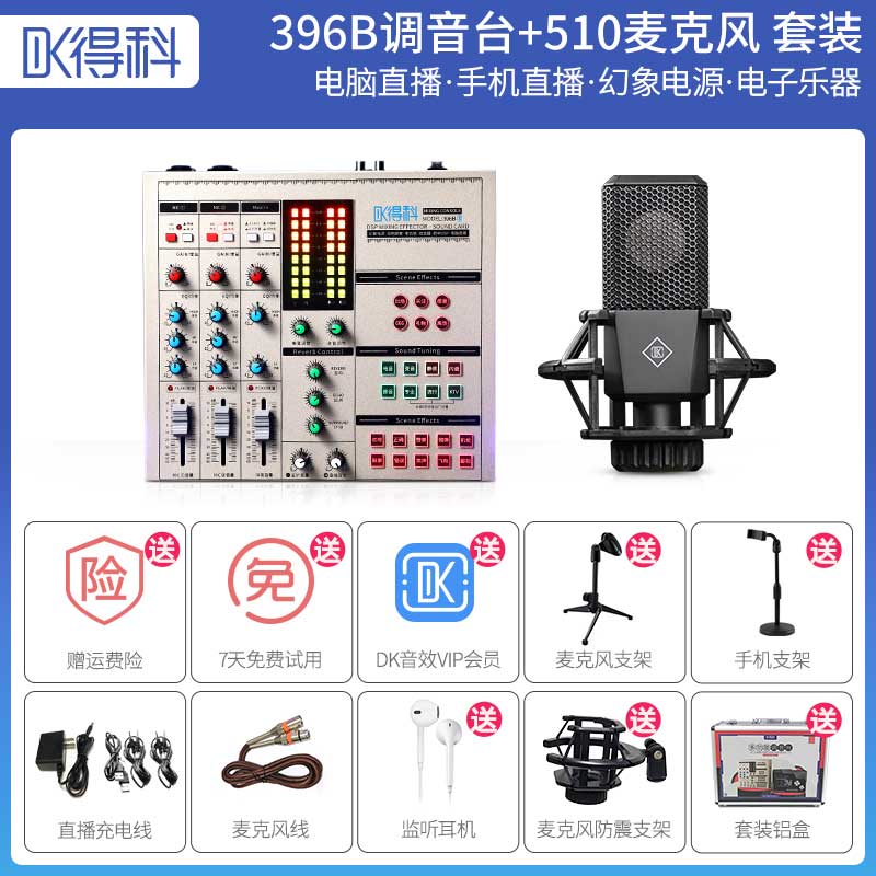 DK/得科 DK396B调音台加510大振膜套装 直播调音台麦克风 手机K歌直播声卡 得科手机声卡音频直播设备