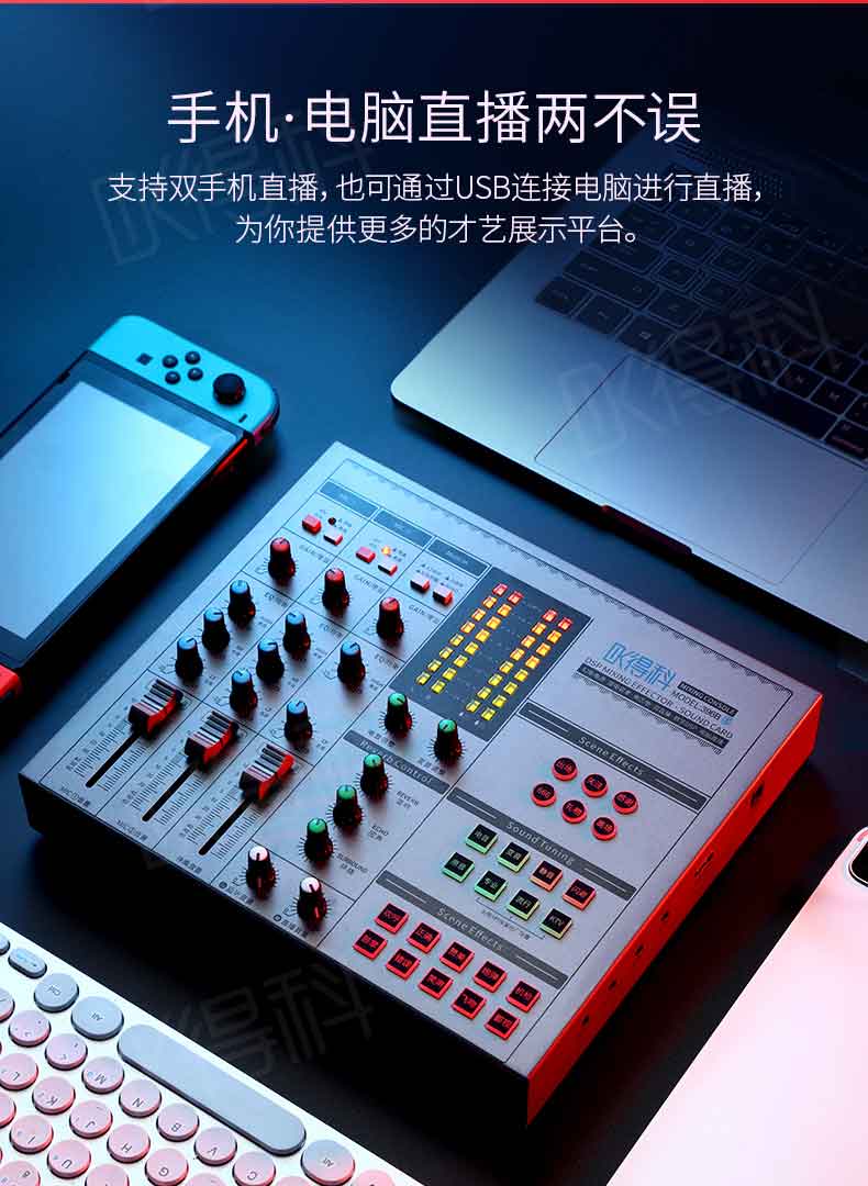 2,麦克风增益衰减EQ均可调节,百搭调音;