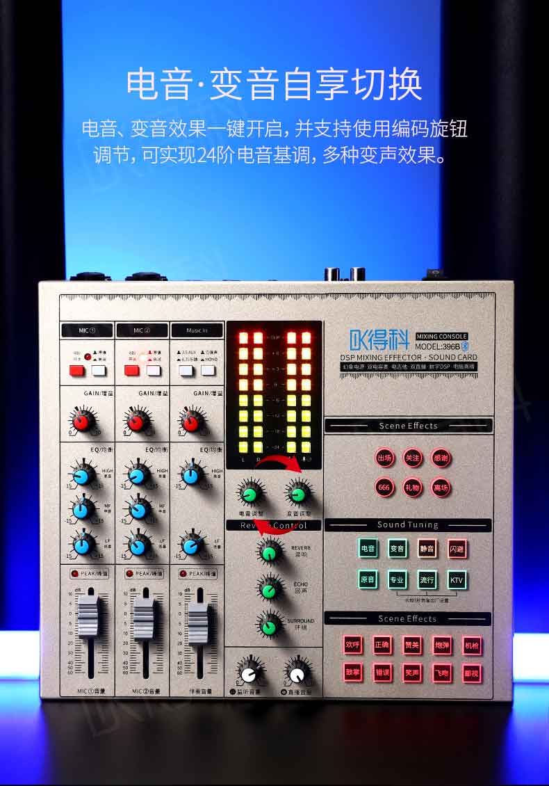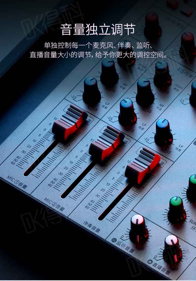 2,麦克风增益衰减EQ均可调节,百搭调音;