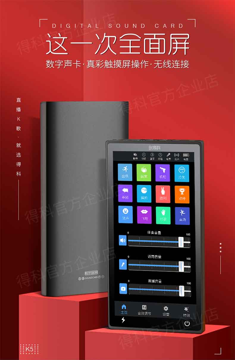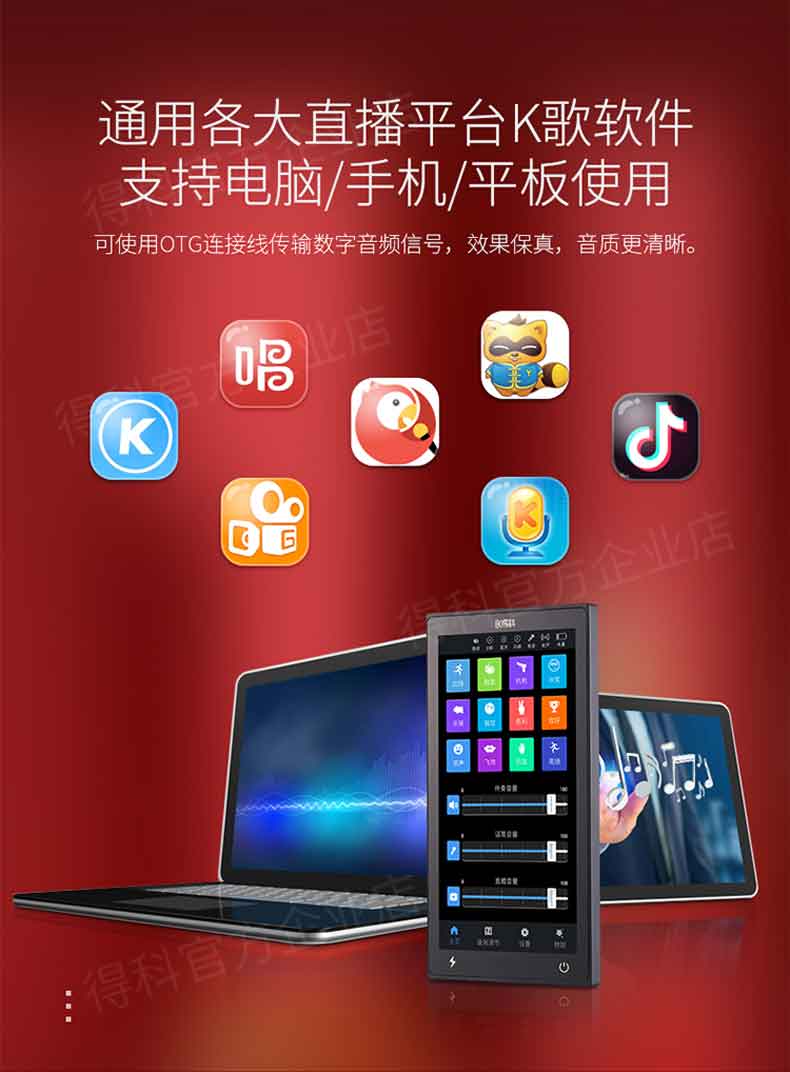 DK/得科 K5手机直播声卡加530电容麦套装 直播调音台麦克风 手机K歌直播声卡 得科手机声卡音频直播设备