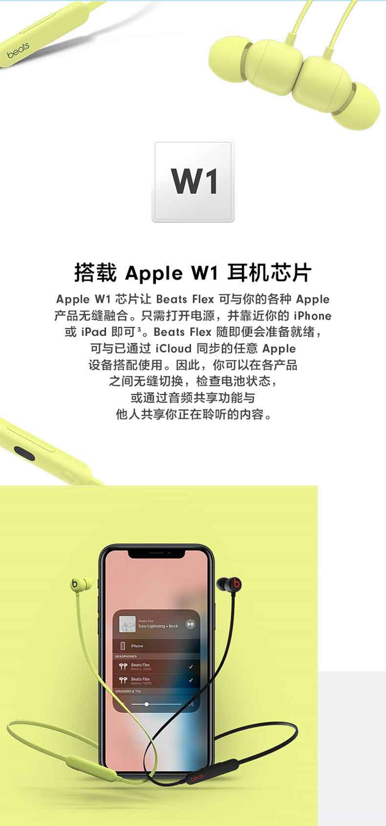 beats Flex 无线蓝牙耳机 Flex 入耳式跑步运动线控耳麦 耳塞 柚子黄色MYMD2PA/A