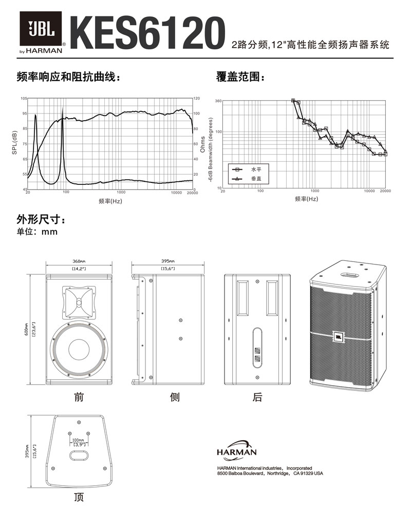 JBL KES6120 2路分频,12”高性能全频扬声器系统