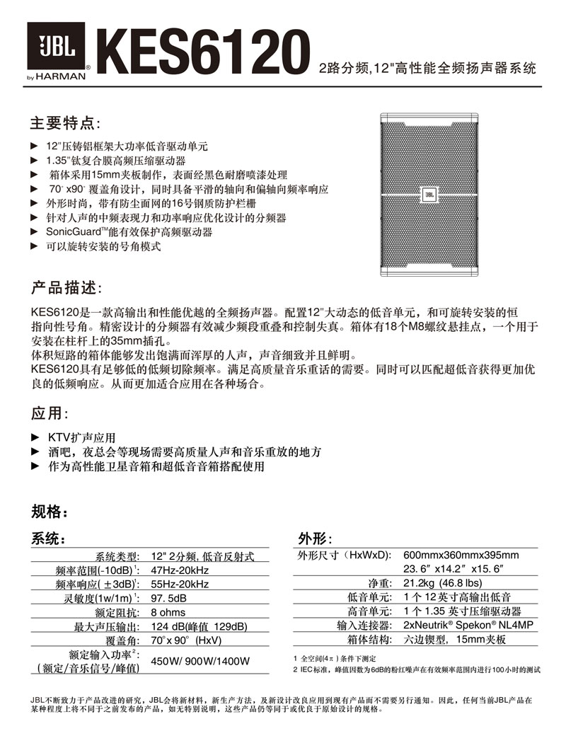 JBL KES6120 12寸音箱 舞台酒吧演出音箱 KTV卡拉OK家用K歌音箱 2路分频,12"高性能全频扬声器系统 娱乐KTV专业音箱 卡拉OK音响 会议中心扩声音箱系统 会所扩声音响系统 会议室音响 学校广播音响 酒吧会议系统 会议室解决方案,会议室设计,会议室报价。 中小型会议室音响系统,均可上门安装调试,专业会议室设备,多功能厅等等设备专业安装调试