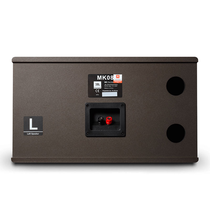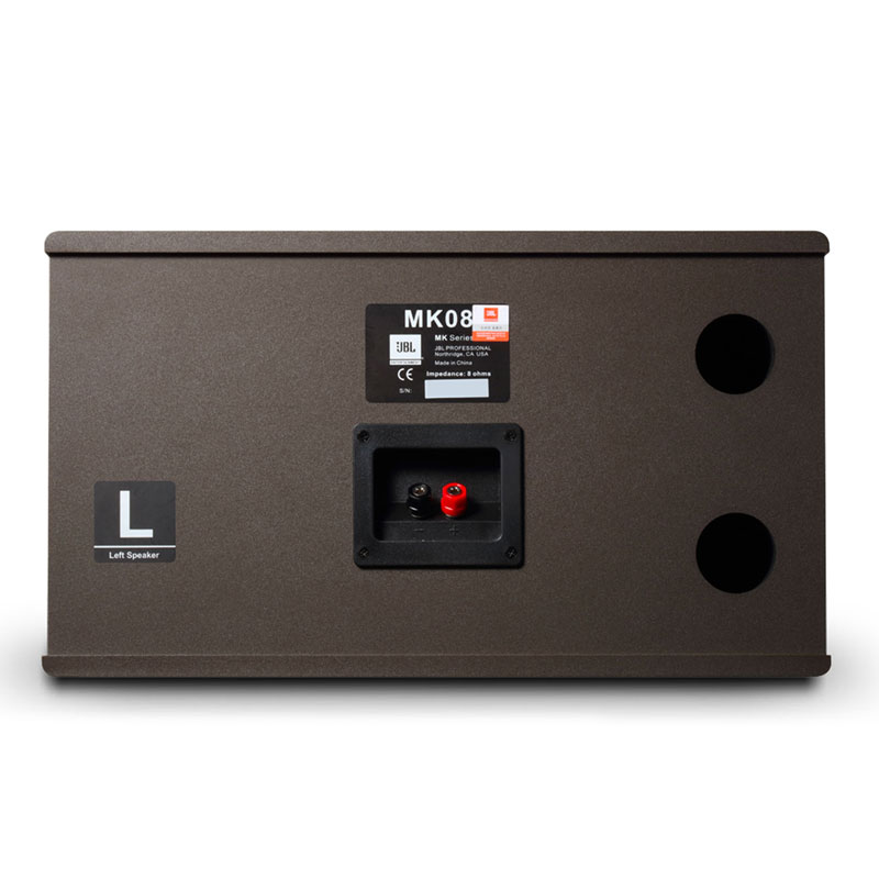 MK08是JBL专为KTV卡包扩声而设计的两分频全频扬声器。该型号扬声器以一只8英寸低音单元搭配两只3英寸高音单元,具有大功率处理能力、低失真率以及出色的电声转换效率等优点。