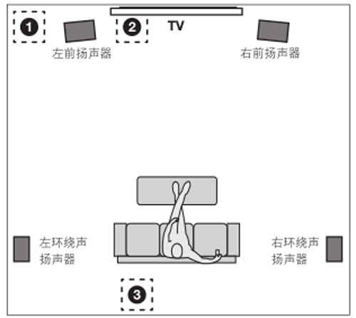低音扬声器在房间中摆放的位置通常有三种,请根据自己对声音风格的喜好以及室内环境的特点选择合适的位置。