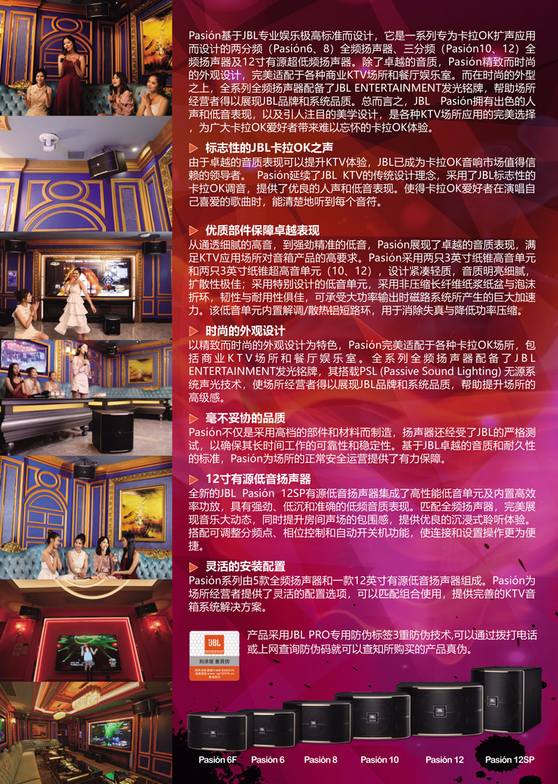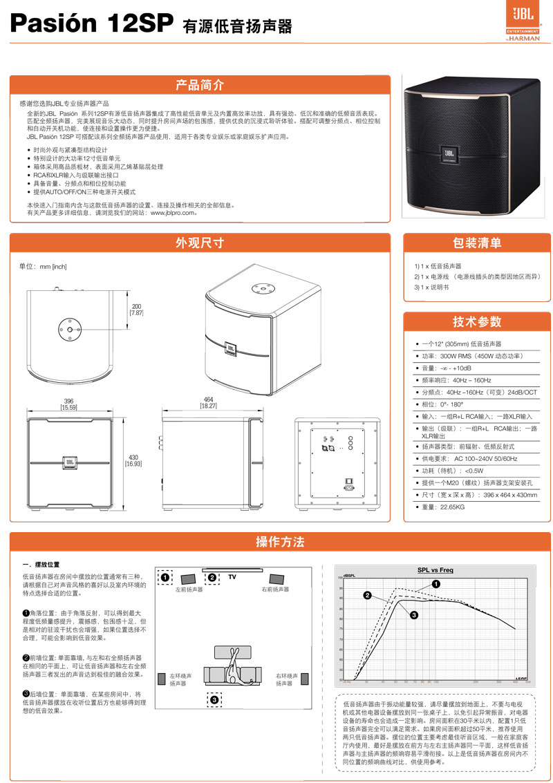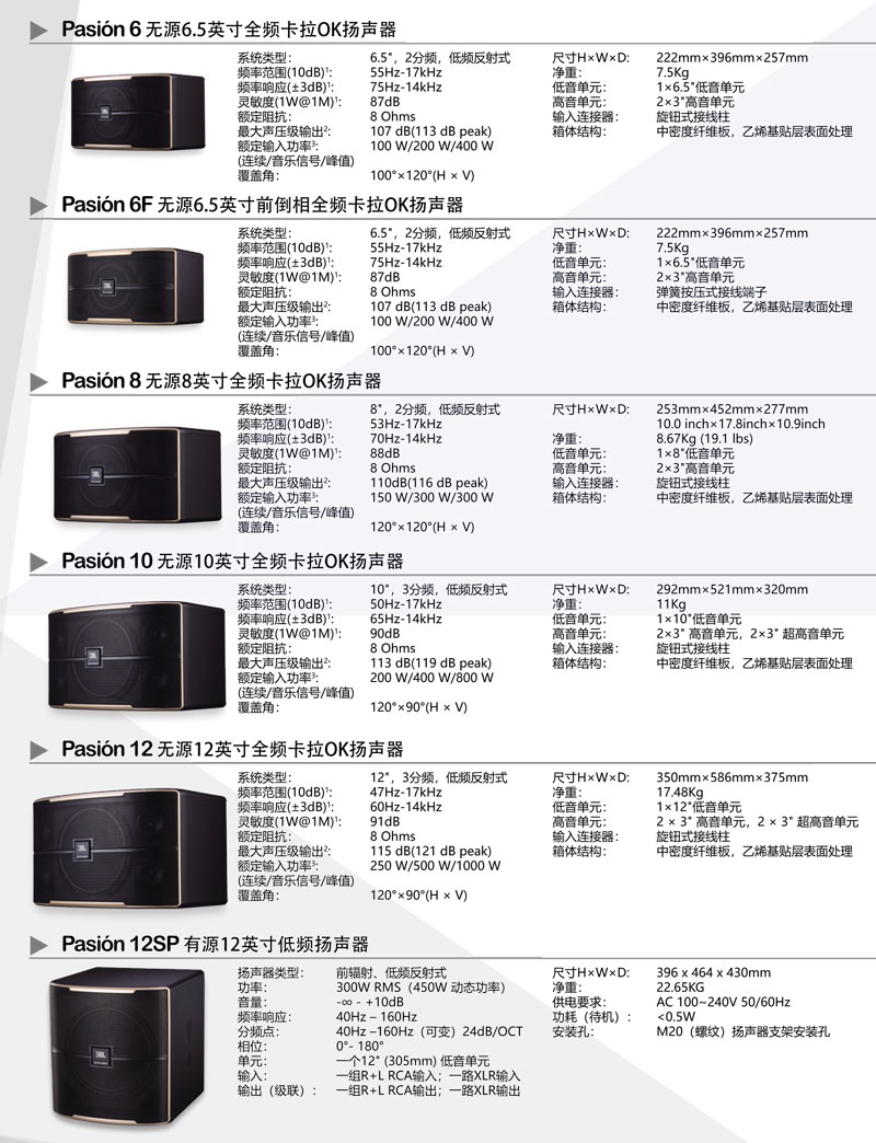 JBL Pasión 12SP 可搭配该系列全频扬声器产品使用,适用于各类专业娱乐或家庭娱乐扩声应用。