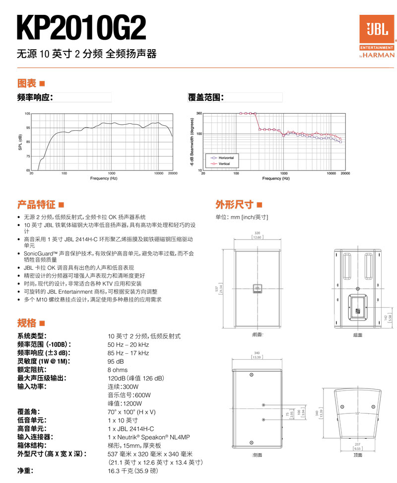 JBL KP2010G2 无源10英寸2分频 全频扬声器