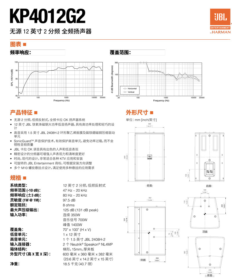 JBL KP4012G2 无源12英寸 2 分频 全频扬声器