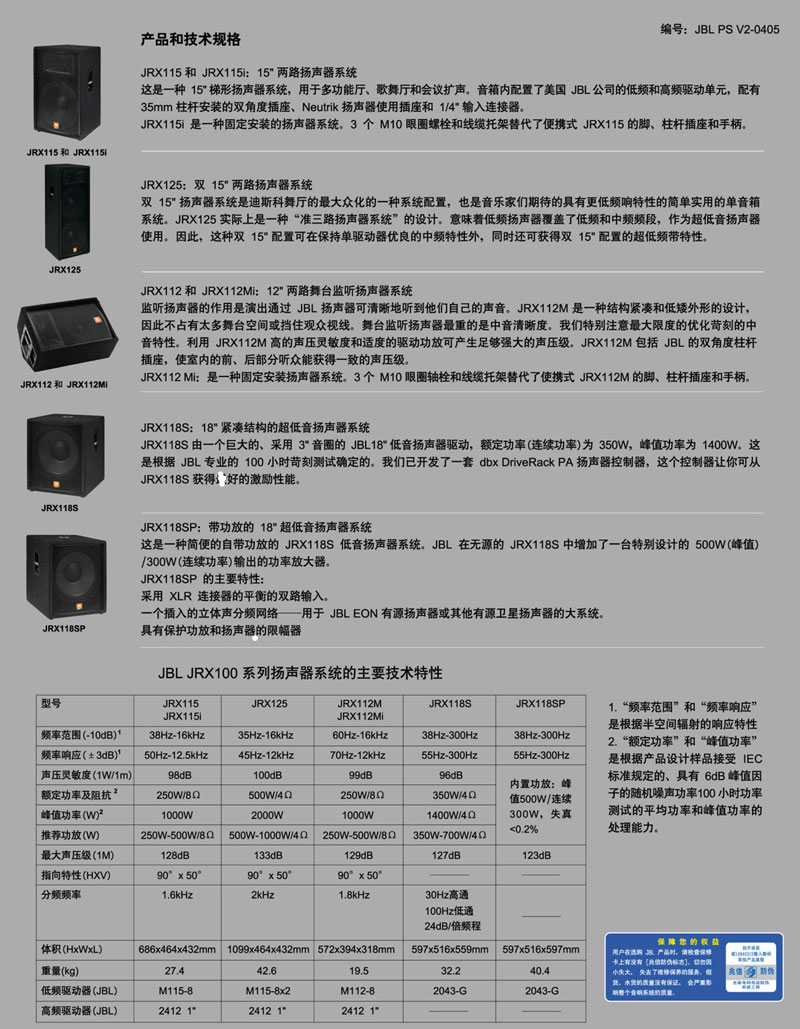 JBL JRX115i产品描述